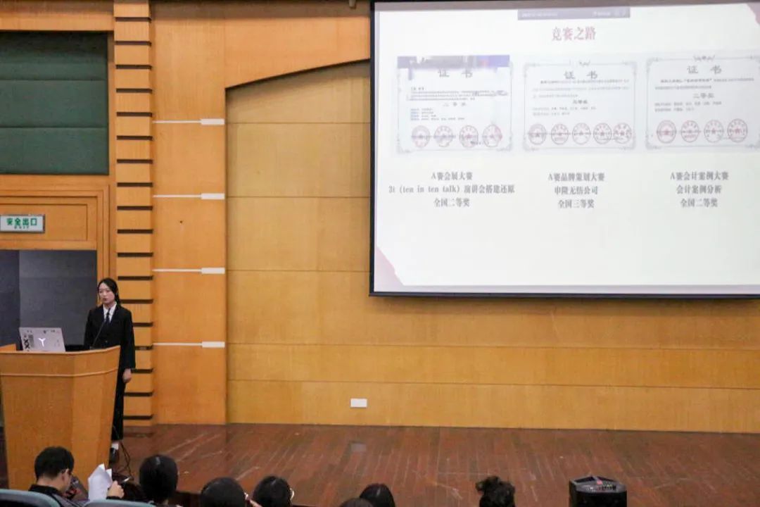 国家奖学金候选人按照抽签顺序依次进行答辩。各位候选人现场展评言辞恳挚、风度从容,分别从学习成绩、学术科研、工作实践、社会公益、思想品德等方面介绍了各自在校期间的成长历程,展现了新时代商院学子向上、向善的良好精神风貌和拼搏进取精神。